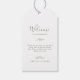 Dessa minimala märkre för välkomna gåvor från löv oliv grönt bröllop är perfekter för en boho bröllop. Utformningen har en enkel grey löv silhuette på oliv grönt med minimalistisk bergsbohemi stil. Anpassa märkrna till platsen för bröllop, ett välkomstmeddelande från kort, namn och bröllop. Dessa märkre är perfekt för destinationsbröllop och hotellgästväskor.