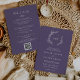 Denna minimala inbjudan till bröllop mellan lila helg i löv är perfekt för en boho bröllop. Juvelfärgskonstruktionen har en enkel grey löv silhouette i en mörk blått violett lila med minimalistisk boho stil. Spara papper genom att ta med evenemangsschemat helg på baksidan av bröllopsinbjudan i stället för på ett separat djurutrymmeskort. Ta med en QR-kod som gör att gästerna kan kontrollera webbplatsen för bröllop eller enkelt kunna OSA online.
