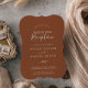 Denna minimala löv-terrakotta bröllopsinbjudan är perfekt för en boho efterfest efter vigseln. Designen har en enkel grönska löv siluett i jordnära bränt orange med minimalistisk ökenbohemsk stil. Svarskort säljs separat, eller så kan du lägga till RSVP-information på baksidan av kortet.