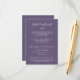 Detta minimala löv plum helg-schema över händelsekortet är perfekt för en boho bröllop. Juvelfärgskonstruktionen har en enkel grey löv silhouette i en mörk blått violett lila med minimalistisk boho stil.