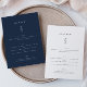 Elegant enkel minimal löv-marinblå 5 x 7-tums Bröllop Bord-meny Kort med platt midmeny i modern skriptkalligrafi. Du hittar en samling med matchande artiklar och storlek 4 x 9 tum i vår butik VelvetPaperCo.