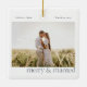 Denna enkla och moderna helgdag fotodekoration präglas av en mörk marin blå färg. Anpassa genom att lägga till ett foto, parets datum namn och bröllop! Det här är en julklapp i perfekten till nygifta i ditt liv. Skicka ett meddelande om Zazzle för ytterligare anpassning!