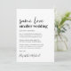 Minimal modern mindre nedskalad bröllopsannons. "Samma kärlek mindre bröllop" är skrivet i en blandning av ett modernt skript och fet trendig typografi. Anpassa ditt meddelande, lägg till era namn i ett underskriftsliknande skript och lägg till er bröllopswebbplats på baksidan för att vänner och familj ska hitta mer information, till exempel länkar till livesändning av ceremonin.