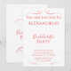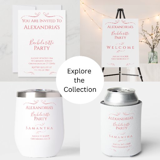 Detta är en minimal och modern inbjudan från Bachelorette Party. Det handlar om röd/ rosa typografi / text. På framsidan står det: "Du är inbjuden till Alexandrias Bachelorette Party", med information om datum, plats och OSA under. Texten är uppbyggd av snyggtens snabba hjärtan. Denna elegant och moderna utformning är perfekt för ditt Bachelorette Party firande. Skriv bara dina uppgifter, Brides namn, datum, plats och OSA, i textrutan Anpassa. Här kan du också ändra resten av texten om du vill. Om du vill ändra färg eller teckensnitt checkar du ut verktyg för designredigering. Om du behöver hjälp med att anpassa dig eller om du behöver hjälp med anpassad design kontaktar du mig via zazzle-chatta eller e-post: ursuladawnmoon@gmail.com