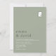 Enkel, modern, minimalistisk, contemporary, gröntens bröllopsinbjudan med monogram i det övre hörnet av högerna och fullt i namn längst bak.