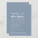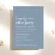 Minsta moderna dammiga blått bröllop-meddelande och -mottagning eller inbjudan till firande-parti med texten "Lyckligtvis allt efter Party" i en blandning av ett contemporary vitt skript och fet trendig vit typografi. Anpassa ditt meddelande och din inbjudan och lägg till namn i ett namnteckning skript.