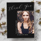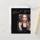 Denna moderna eleganta 1-foto examens "Tack"-kort har designelement av modern text kombinerad med elegant kalligrafi skrift. Ditt examensfoto visas på framsidan av kortet medan baksidan av kortet erbjuder personligt textutrymme för ett tackmeddelande eller kan lämnas tomt om du vill skriva ditt meddelande för hand. Bakgrunder är svarta med vit text eller enkelt anpassa dessa till färger du väljer.
