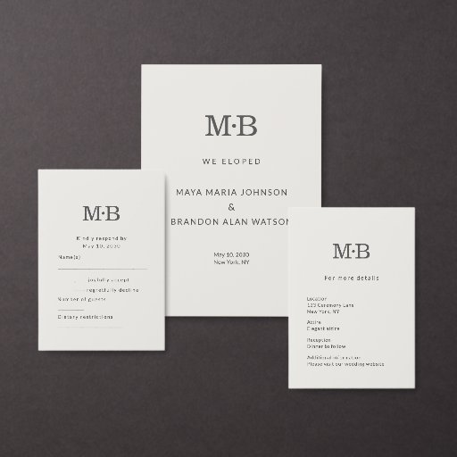 A minimalist modern wedding return address label designed for elegant elopements and intimate celebrations. This clean, editorial-style address label features refined typography, soft neutral tones, and a timeless monogram layout that pairs seamlessly with modern wedding invitations and stationery suites.
