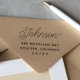En enkel och minimal adress frimärke-design med din familj namn i modern manusyrgrafi med din returadress eller kontaktinformation nedan i sans-serif-typografi. Hela texten kan redigeras med Zazzles enkla anpassning till användan verktyg. Det här är trägummi frimärke - välj handtaget och bläck-plattan enligt dina önskemål! En självtryckande version av frimärke finns i min butik. Du kan gärna meddela mig om du vill ha frågor. Observera att vi inte kan ändra en befintlig order. Visa samlingslänken på den här sidan eller besök vår butik om du vill ha fler adress frimärke-designer!