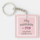 A Modern Minimal Fifty and Fabulous Pink 50th Birthday Party favor keepsake acrylic key chain. A fun, whimsical, quirky, fiftieth birthday party key chain favor with playful black and pink text, designed for women turning 50, who are young at heart, and still love to have fun! Have fun easily customizing the first and last name with the editing tool.