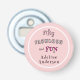 A Modern Minimal Fifty and Fabulous Pink 50th Birthday Party favor button bottle opener keepsake gift. A fun, whimsical, quirky fiftieth birthday party bottle opener with playful black and pink text, designed for women turning 50, who are young at heart, and still love to have fun! Have fun easily customizing the first and last name with the editing tool.