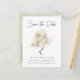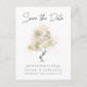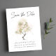 Denna minimala moderna save the date-postkort är speciellt utformad för minimalister och naturälskare med en akvarell av ett träd med impressionistiskt grönt, rosa och korallfärgade lövverk och en böjd grå stam. "Spara datum" är skrivet med en stilren samtida mörkgrå stil, era namn är i en matchande salvia grön och ni kan enkelt lägga till datum och plats för bröllopet. På baksidan av kortet kan ni lägga till om en formell inbjudan kommer att följa och er bröllopswebbplats om önskas i matchande grå typografi mot en ljus salvia grön bakgrund.