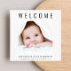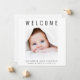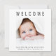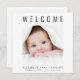 Ett minsta antal eleganter för att presentera ditt nyfödda baby för vänner och familj. Den här designen har "Välkommen" överst i stor typografi, foto och namn, födelsedatum och födelsestatus i enkel modern typografi. Lägg till ett personlig-meddelande på baksidan.