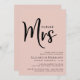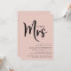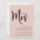 Minimal modern "Future Mrs" rosa inbjudningskort för möhippan med "Mrs" skrivet i stor elegant.