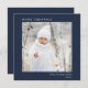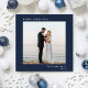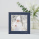Blått kort för fyrkantiga helgdag i elegant med en minimal modern design som innehåller ditt foto, och "God jul" ditt namn och året med enkel vit typografi.