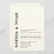 Den här inbjudan innehåller en sofistikerad bakgrund av elfenben med minimal design. Parets namn framhävs med fet, elegant typografi, vilket tillför inbjudan en del modern elegans.
