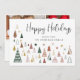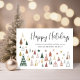 Roligt - minimalt modernt julkort med återbildande abstrakter av grönt, terracotta och guld träd och stjärnor, "Glad helg" i ett snyggt-skript och hälsning och namn i enkel typografi. Lägg till två foton och ett personlig-meddelande på baksidan.