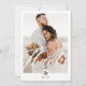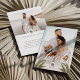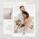 Tack till gästerna i bröllop med vårt moderna och minimala tvåfotstack till bröllop. Designen har ett stort foto på framsidan med "Tack" som visas i ett modernt skript. Modern arch handflatan träd monogramdesign som kan anpassas efter parets monogram. Den omvända sidan har ett andra foto med ett "Kärlek"-skriptöverlägg och personlig med ditt eget tackmeddelande. Design efter moodthologipapper