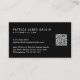 Minsta moderna och elegant professionell svart affärskort med namn, titel och kontaktinformation (t.ex. e-post, telefonnummer, företag namn och utskickande adress) i ren och enkel vit typografi. Ange en URL-adress adress för att skapa en QR-kod som är länkad till webbplatsen, medieprofilerna i social eller någon annan plattform som visar ditt arbete, som dina kunder och kunder lätt kan söka igenom för att utforska din expertis. Lägg till ytterligare text eller lämna tom på baksidan.