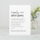 Minimal modern bröllopsmottagning eller inbjudan till firande-festen som innehåller "Lyckligtvis någonsin efter Party" i en blandning av ett contemporary- och fet trendig-typografi. Anpassa ditt meddelande och din inbjudan och lägg till namn i ett namnteckning skript. På motsatt sida anger du URL-adressen adress på webbplatsen bröllop för att skapa en QR-kod för dina gäster för att söka efter OSA online och få all information.