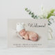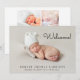 Minsta moderna 5-fotomeddelanden för att meddela att baby kommer till familj och vänner. Ditt nyfödda foto fyller framsidan med överlagret "Välkommen!" i ett sött skript (du kan flytta texten till ett annat område på kortet beroende på fotot genom att redigera den i designen verktyg). Lägg till hans eller hennes namn, ankomstdatum och födelsestatus nedan. På motsatt sida lägger du till ytterligare fyra foton, ett "välkomnas av"-meddelande och föräldern och syskon först namn.