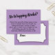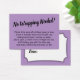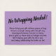 Om du är värd för en visning som inte är en gåvbrytning för att bli brud, kan du välja roligten med ett enkelt kort. Med hjälp av ett typsnitt för eleganten lade jag först till ett huvud med texten "Ingen figursättning behövs!" på framsidan och "Till" och "Från" på presentsidan för märkrn. Mallen fält har upprättats för att ge gästerna instruktioner om att inte fylla i sin present. Var vänlig och ändra ordalydelsen på det sätt du vill. Det finns många populära alternativ till denna text, om ni vill ha en ändring. Alla typsnitt och färg kan ändras efter behov.