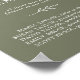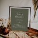 Denna minimalistiska mörkgröna blad-minnesgåva i form av en affisch eller skylt är perfekt för en elegant bröllopsfest. Designen har en enkel grön blad-siluett i olivgrönt med minimalistisk bergsbohemisk stil.