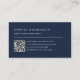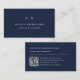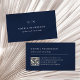 Dessa eleganter, moderna affärskort, har en enkel mörk marin blå med vit textdesign med initialer eller monogram som exuderar minimalistiskt stil. Kortets baksida har också en skannerbar QR-kod tillsammans med en enkel layout för professionellen och all kontaktinformation.