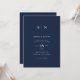 Den här eleganten, moderna bröllopsinbjudningar, har en enkel mörk marin blå och vit textdesign som utesluter minimalistiskt stil. Lägg till initialer eller monogram för att göra dem helt egna. Baksidan av inbjudan är en solid flotta.