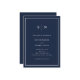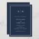 Den här eleganten har moderna bröllopsinbjudningar en enkel mörk marin blå och vit minimalistisk textdesign, med ett klassiskt ram vid gräns. Lägg till initialer eller monogram för att göra dem helt egna.