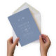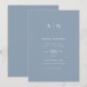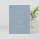 Den här eleganten har moderna bröllopsinbjudningar en enkel dammig blå och vit textdesign som utesluter minimalistiskt stil. Lägg till initialer eller monogram för att göra dem helt egna.