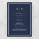 Dessa eleganter, de moderna bröllopsprogrammen, har en enkel mörk marin, blå och vit minimalistisk textdesign, med ett klassiskt ram vid gräns. Lägg till initialer eller monogram för att göra dem helt egna.