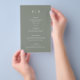 Den här eleganten, de moderna menykorten i bröllop eller menykorten för repetitionsmiddagar har en enkel grönt och vit textdesign som utesluter minimalistiskt stil. Lägg till initialer eller monogram för att göra dem helt egna.