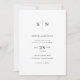 Den här eleganten har moderna bröllopsinbjudningar en enkel svart och vit textdesign som utesluter minimalistiskt stil. Lägg till initialer eller monogram för att göra dem helt egna. Baksidan av inbjudan är helsvart.