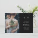 Den här eleganten innehåller moderna bröllopsinbjudningar en enkel svartvit textdesign som exuerar minimalistiskt stil, med två av dina favoritfoton. Mer information eller webbplats om bröllop kan finnas på baksidan. Lägg till initialer eller monogram för att göra dem helt egna.
