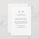 De här eleganterna, de moderna bröllop-gästkorten, har en enkel svartvit minimalistisk textdesign med initialer eller monogram. Du kan använda dessa kort för köranvisningar, mottagnings- eller transport-information, hotell- eller inkvarteringsinformation och alla andra bröllop-uppgifter som du behöver dina gäster för att veta.