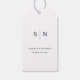 Dessa eleganter, moderna märkre för vita och mörk bröllopsgåvor har en enkel textdesign som utesluter minimalistiska stil. Lägg till initialer eller monogram för att göra dem helt egna.