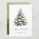 Share the beauty of the season with this elegant Christmas card featuring a single snowy pine tree against a soft green watercolor background. The delicate script font adds a timeless, graceful touch—perfect for sending heartfelt wishes to family and friends. This minimalist yet festive design brings a touch of nature and sophistication to your holiday greetings. Personalize with your family name and year for a custom keepsake that captures the peaceful spirit of winter.