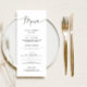 Elegant och minsta menykort för bröllop-middag med modern skripttext.