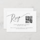 Elegant och minimal bröllop OSA med en modern skripttext överst med en QR-kod. Den här enkla designen fungerar för vilken säsong som helst. Kortet innehåller även alternativ för val av måltid för gäster att välja bland.