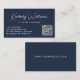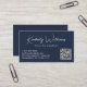 Professionellens elegant och minsta mörk blått affärskort med ditt namn i ett modernt, vitt skript i snyggten och ditt företag, titel och kontaktinformation i enkel och ren, vit typografi. Ange webbplatsens URL adress för att skapa en skannerbar QR-kod. På baksidan anpassar du ytterligare text eller lämnar tom.