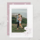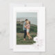 Det här Spara datumkortet har handritade rosa-anemonblommor i hörnet av förlovningen bild och skapar det centrum där uppmärksamheten riktas. Denna utformning är modern och mycket elegant. Baksidan har en vit anemon mönster över rosans bakgrund. Gör det första intrycket för dina gäster oförglömligt med den här blommigten och spara datumet.