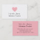 Affärskortet för lärare i högdager har ett söt vattenfärgsminimalt baby rosa hjärta. Lägg till namn och skräddarsydd med detaljer. Detta söta rosa-kort kommer att vara perfekt för lärare eller ersättare för lärare.