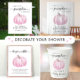 Dessa minimala duschseringar i flicka har en söt pastellfärgad rosa av en pumpa, "babydusch" i ett skript för söt snyggt, och namn och duschdatum i mor-till-vara-och i modern och handskriven typografi.