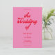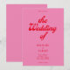 Retro bröllopsinbjudan med modern retrotypografi i rosa och rött färg.