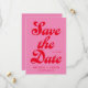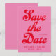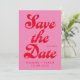 Retro bröllop spara datum med modern retrotypografi i rosa och röd färg.