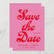 Retro bröllop spara datum med modern retrotypografi i rosa och röd färg.