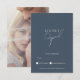Lägg märke till din speciella dag med vårt minimalistiska Royal, blått opulens, enkelt skript fotokort för Bröllop OSA. Den här eleganten och den moderna designen kombinerar klassisk chic med ett rent, vitt skript, på en slående royal blå opulensbakgrund, perfekt för snyggten firande. Fyll i sviten med matchande "Spara datumkort", OSA kort och "Tack"-anteckningar, som alla är designade för att bibehålla samma sofistikerade enkelhet. Anpassa din inbjudan med ett foto för att skapa en tidlös nyckelfråga för dina gäster.