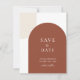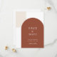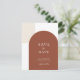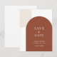 Set the tone for your wedding with this minimalist save the date card, featuring two arches. A basic terracotta arch and a simple beige cream arch in the corner. The clean, retro layout offers a modern take on elegant bohemian style, making it ideal for couples planning an outdoor celebration, courtyard wedding, or intimate gathering.