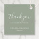 Lägg till en genomtänkt finish till dina rustika bröllopsgavor med dessa minimala fyrkantiga presentkort. En enkel salvia grön bakgrund visar upp delikat stilfull vit kalligrafi i skrivstil med "tack" högst upp, följt av "för att fira med oss", med brudens och groomens namn och bröllopsdatum nedan i ren typografi. Samma eleganta design visas på baksidan och skapar en polerad look från alla vinklar.